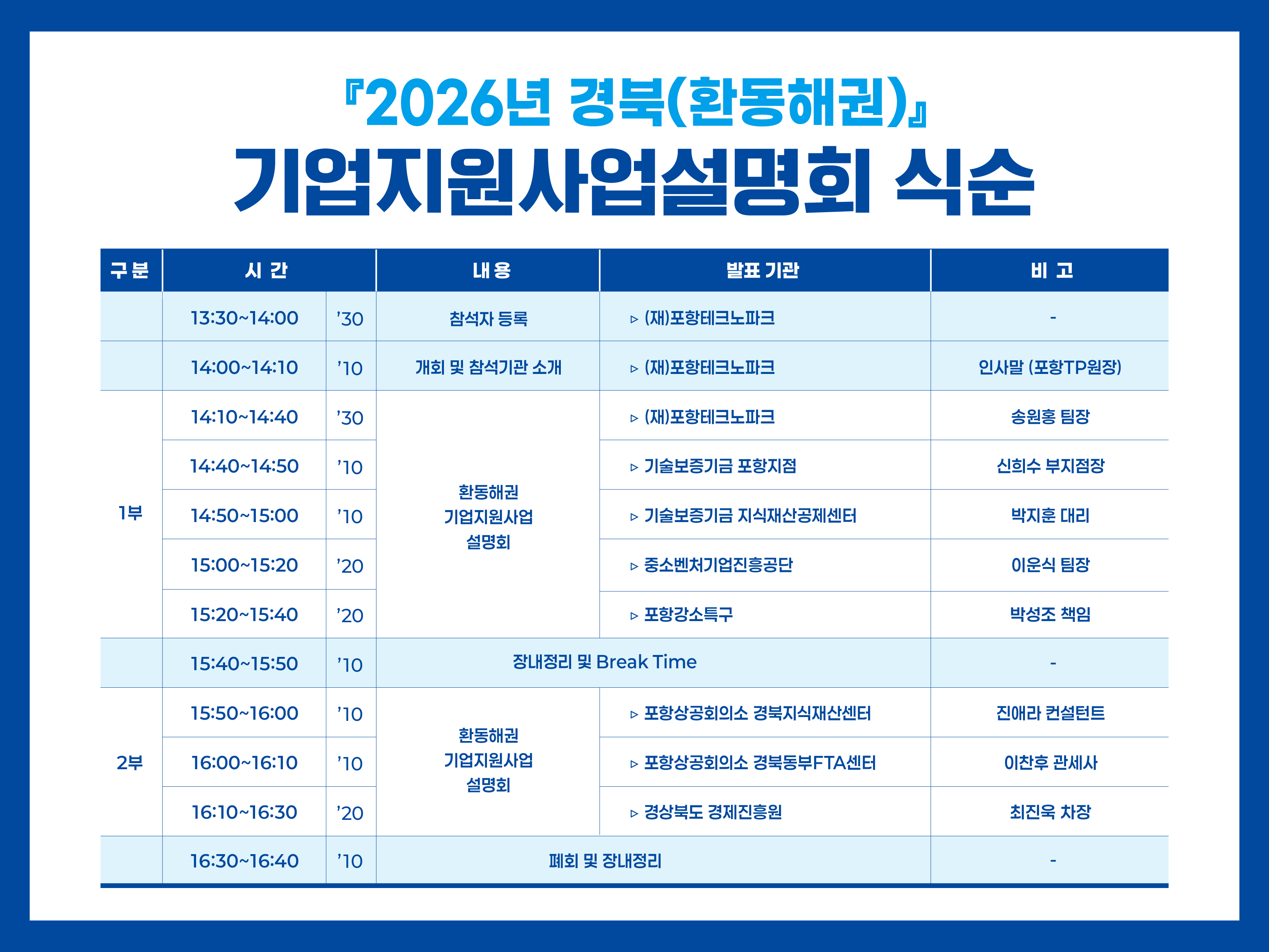 2026년 포항테크노파크 경북(환동해권) 기업지원사업 설명회 개최